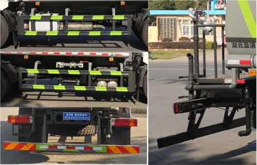 該車主要用于城鄉(xiāng)園林綠化噴灑,噴藥;主要裝置為水罐及噴灑裝置;罐體有效容積:11.45立方米,罐體外形尺寸(長×長軸×短軸)(mm):5200×2300×1410;ABS系統(tǒng)生產(chǎn)廠家:長春瑞立科密汽車電子有限公司,型號:CM4XL;側(cè)、后防護(hù)材料均為:Q235碳鋼,連接方式均為:螺栓連接,后部防護(hù)截面尺寸(mm):120×50,后部防護(hù)離地高度(mm):480。隨底盤選裝駕駛室。選裝噴霧裝置樣式。