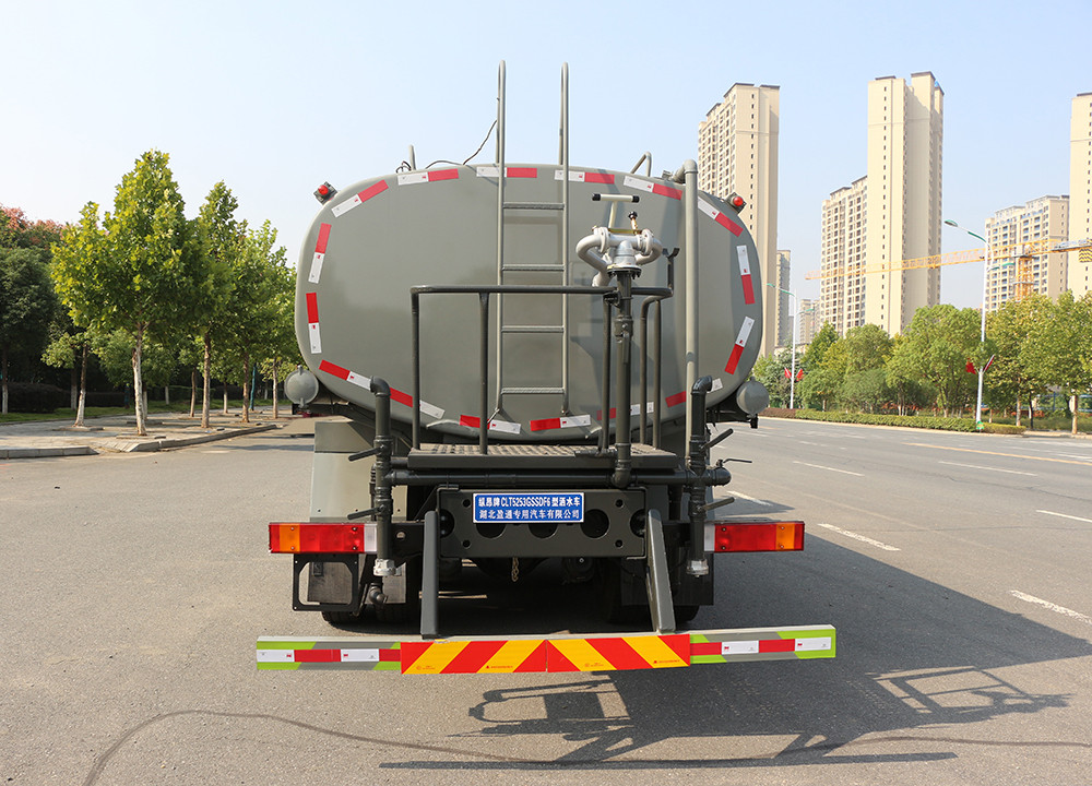 東風天龍20噸灑水車產品標配前噴(鴨嘴)、后沖、后灑、側噴、后置式工作 平臺,平臺上配置綠化水炮(可 360°旋轉,既可以調成柱狀,也可 以調成霧狀,更可以調成直沖狀、大雨、中雨、小雨、毛毛雨),配 備優質大功率專用灑水泵(可自吸自排,可從河里或池塘抽水到罐體), 取力器,雜物過濾網,消防接口,自流球閥系統、取力器、球閥、濾網 均為國家標準產品,主管道加粗,法蘭墊、法蘭盤加厚,大通徑球閥。 整體具備性能優良安全可靠、效率高、流量大、維修方便等特點。