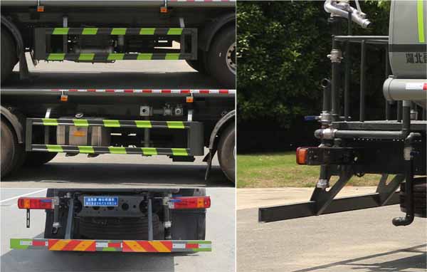 該車主要用于城鄉園林綠化噴灑;主要裝置為罐體及噴灑裝置;罐體總容量:16.07立方米,罐體有效容積:15.3立方米,罐體外形尺寸(長×長軸×短軸)(mm):6700×2400×1470;側、后防護材料均為:Q235碳鋼,連接方式均為:螺栓連接,后部防護截面尺寸(mm):120×50,后部防護離地高度(mm):480;ABS系統型號/生產企業對應關系:CM4XL-4S/4M,廣州瑞立科密汽車電子股份有限公司.采用底盤2100+4200軸距(mm)。選裝后部箭頭燈,選裝后部弧形噴灑裝置,選裝噴灑裝置樣式,選裝水炮支架位置,選裝自動球閥安裝位置。隨底盤選裝駕駛室。