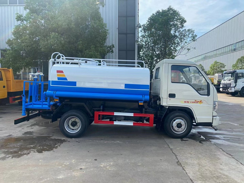 3噸灑水車具體配置:底盤部分,采用福田原廠灑水車底盤,全柴55匹馬力發(fā)動機,2600軸距,萬里揚5檔變速箱,600-16輪胎,國三排放標準,,專用部分,罐體采用優(yōu)質(zhì)碳鋼材質(zhì)制作,帶兩個前沖噴頭、兩個后灑噴頭、兩個側(cè)噴、后工作平臺、尾部安裝綠化炮,綠化炮可以自行調(diào)節(jié)(柱狀,大雨,中雨,小雨,霧狀),帶專用灑水泵可以實現(xiàn)自吸自排,帶消防接口,兩根輸水管,此車為出口車型