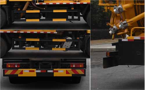 清洗吸污車隨底盤選裝駕駛室,選裝罐體左右及后部樣式;該車主要用于下水道系統的清理和疏通工作;主要裝置為罐體及清洗吸污裝置;罐體尺寸為(總長×直徑)(mm):5400×1900(前部含封頭長2420mm為清水罐,后部含封頭長2980mm為污水罐);污水罐總容量:6.0立方米,污水罐有效容積:5.71立方米,介質:液態污物,清水罐總容量:4.8立方米,清水罐有效容積:4.57立方米,介質:水;兩罐獨立,且不能同時滿載,清洗功能時用清水罐,吸污功能時用污水罐;側、后防護材料均為:Q235碳鋼,連接方式均為:螺栓連接,后部防護截面尺寸(mm):200×60,后部防護離地高度(mm):450;ABS型號/生產廠家:3631010-C2000/東科克諾爾商用車制動系統(十堰)有限公司,ABS 8/東科克諾爾商用車制動系統(十堰)有限公司,4460046450/威伯科汽車控制系統(中國)有限公司,J ABS/焦作博瑞克控制技術有限公司。卸料方式為舉升后卸式。選裝限速裝置,限速89.選裝后部出污口樣式。