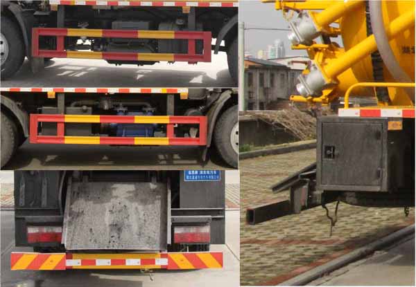 該車用于下水道排污及疏通,專用裝置:罐體、吸污泵、清洗沖刷總成.該車輛具有舉升功能,罐體外形尺寸(罐體總長×直徑)(mm):4900×1750(前面1600mm為清水罐,后部3300mm為污水罐);污水罐總?cè)萘?6.91立方米,污水罐有效容積:6.58立方米,介質(zhì):液態(tài)污物,密度800千克/立方米;清水罐有效容積:3.6立方米,介質(zhì):水,密度1000千克/立方米;清水罐和污水罐為獨立罐體,清洗功能時用清水罐,吸污功能時用污水罐,污水罐和清水罐不可同時滿載,兩罐不可同時使用.ABS型號/廠家:ABS型號:ABS/ASR-24V-4S/4M,廠家:襄陽東風(fēng)隆誠機械有限責(zé)任公司;側(cè)、后防護材料均為:Q235碳鋼,側(cè)、后防護均為螺栓連接,后部防護截面尺寸(mm):120×50,后部防護離地高度(mm):380;僅采用底盤3800mm軸距改裝.隨底盤選裝駕駛室,選裝后部出口樣式,選裝側(cè)面樣式.隨底盤選裝車速89km/h.選裝油箱電瓶安裝位置.選裝后部樣式.