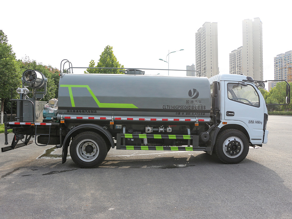 東風福瑞卡霧炮9方灑水車整車型號 CLT5120GPSEQ6 型綠化噴灑車 2 發動機型號 D30TCIF1 3 發動機馬力/功率 云內 170 馬力/125KW 4 發動機排量 2977ML 5 變速箱 長泰 8 檔 6 輪胎規格 8.25 鋼絲胎 7 軸距 3800 8 總質量 11995KG 9 整備質量 4920KG 10 額定載質量 6880KG 11 整車尺寸(長×寬×高) 7.3*2.25*3 12 罐體容積 9 方 13 燃料種類 柴油 14 排放標準 國六 15 水泵型號 40/50 16 罐體材質 Q235 碳鋼