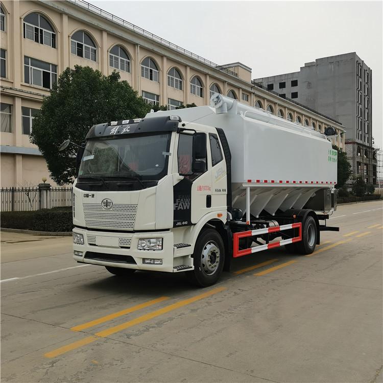 解放20方散裝飼料車底盤配置:采用解放J6系列排半駕駛室底盤,大柴180馬力發動機,6檔變速箱,280雙層大梁,前橋4.5噸,后橋9噸(加強型前后鋼板彈簧),10.00R20鋼絲胎,斷氣剎,排氣制動,帶原廠ABS,空調。