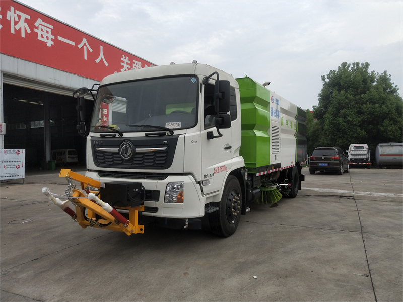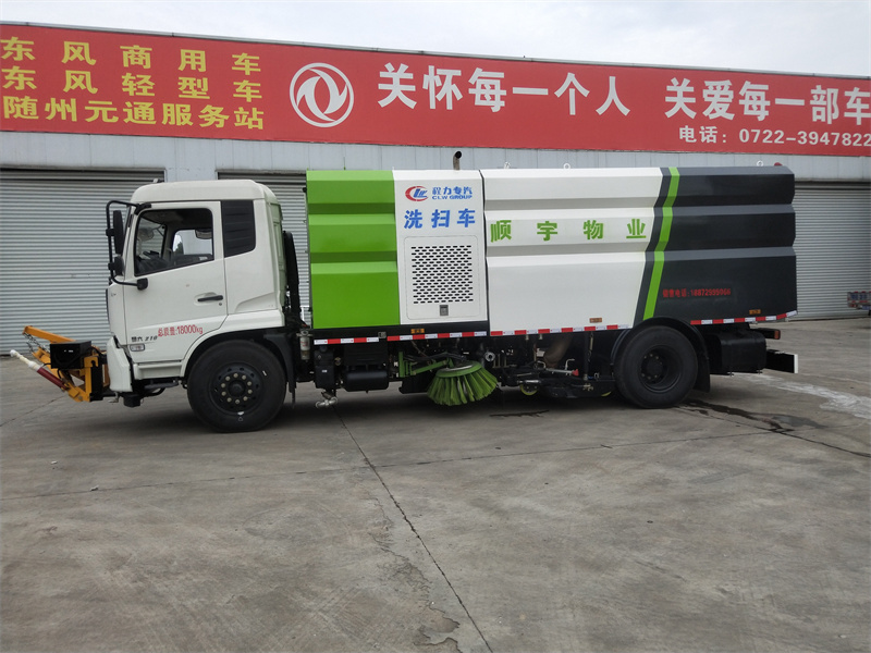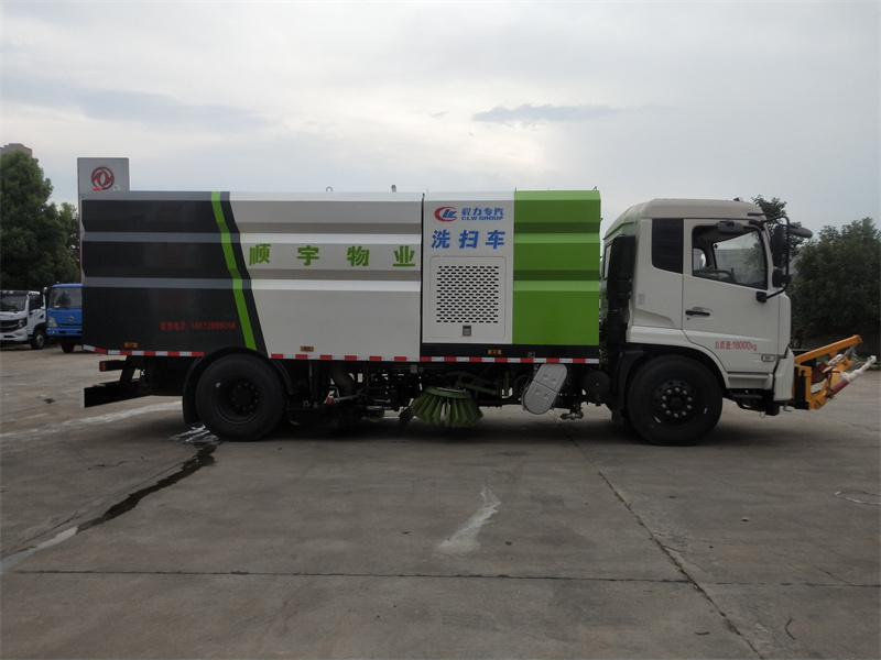 洗掃車采用中置兩刷盤,中置寬吸盤,配上具有防撞避障功能的V型高壓沖水架,組成一條大于3.5米的沖洗清掃帶。采用康明斯EQ6BT5.9-118型副發(fā)動(dòng)機(jī)現(xiàn)階段亦有采用電動(dòng)作為動(dòng)力的驅(qū)動(dòng)裝置橫置在車架中部,具有氣動(dòng)離合裝置控制的抽吸風(fēng)機(jī)布置在動(dòng)力倉的左側(cè)。采用不銹鋼材料加工而成的水箱與垃圾箱均為采用方形瓦棱結(jié)構(gòu)。水箱分為兩部位,一部分為前置獨(dú)立水箱,裝配在動(dòng)力倉的前部;另一部分為設(shè)置在垃圾箱前部的水箱,可隨垃圾箱與動(dòng)力倉罩同時(shí)升降。具有舉升功能的垃圾箱內(nèi)裝配有高壓沖洗噴頭,使得卸料更為輕松、干凈徹底。能夠隨垃圾箱體舉升的動(dòng)力倉罩可使動(dòng)力系統(tǒng)的維修保養(yǎng)極為便利。采用歐美地區(qū)的名優(yōu)配套部件,使得整車性能更為優(yōu)良,工作更為可靠。