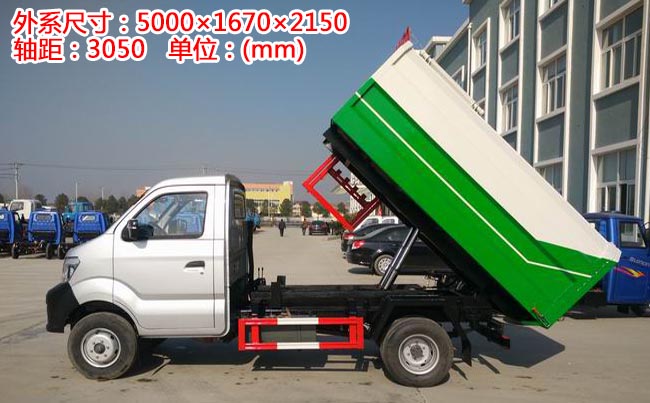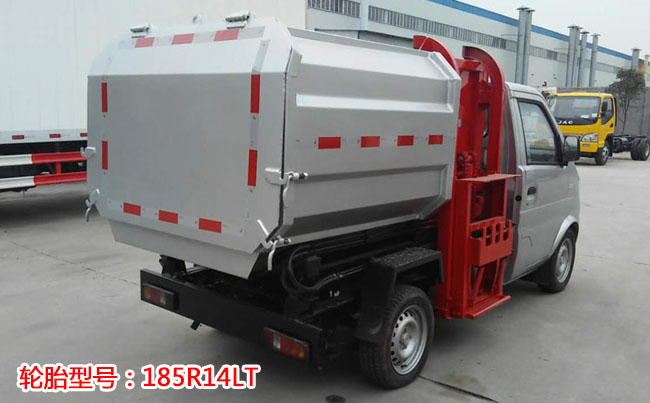 箱體容積3~4立方米,板材厚度邊3底4,箱體結構為墻板形式,國產多路閥,油泵、取力器、油缸,駕駛室外部操作、箱體底部雙缸液壓舉升卸料,后門機械鎖緊、手動開啟。