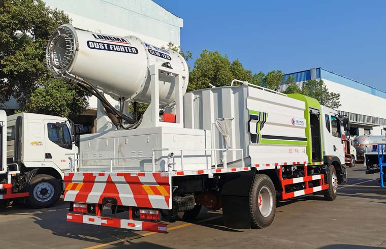 東風霧炮車上裝配置:罐體容積10立方,罐體為方形罐,罐體內部做防腐,罐體鋼板采用Q235碳鋼鋼材,整車具備灑水車的一切功能(前沖、后灑、側噴、平臺高炮),氣動球閥控制灑水功能,水位報警器,標配億豐60/90水泵,自流閥及消防接頭各1個、水管2根。后平臺安裝一臺80米霧炮。