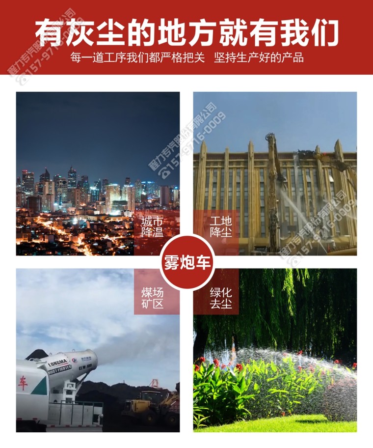 東風霧炮車霧炮參數:CLW-100型80米,副發電機組功率75(Kw),風機功率18.5(Kw),不銹鋼多級離心泵功率7.5(Kw)。100米無線遙控操作,霧化距離80米(靜風室內距離)實際射程:(霧化射程會受濕度、溫度、風速等各方面天氣因素的影響,另外天氣干燥地區一部分在空中被蒸發掉)。