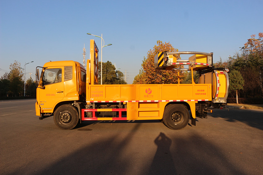該車專用裝置為:車載式緩撞裝置,主要用于移動施工、臨時性封閉車道或交通事故處理及搶險現(xiàn)場, 降低城市道路施工、高速公路養(yǎng)護等作業(yè)中的安全問題;后伸800mm;ABS型號/生產(chǎn)廠家: 3631010-C2000/東科克諾爾商用車制動系統(tǒng)(十堰)有限公司,ABS 8/東科克諾爾商用車制動系統(tǒng)(十堰)有限公司, 4460046450/威伯科汽車控制系統(tǒng)(中國)有限公司;側(cè)防護材料為:Q235碳鋼,連接方式為:焊接連接, 后部防護為專用裝置代替,后部防護離地高度(mm):380。隨底盤選裝駕駛室. |