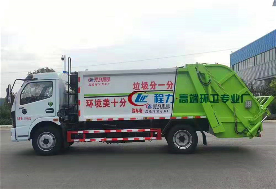 新款平面弧形廂體,廂體材料為武鋼優質碳鋼,外箱尺寸:7340×2350×2800mm,有效壓縮容積8立方,采用邊四底四優質鋼板制作,國內知名品牌博利液壓油缸,杰特油管,揚州中梅多路閥,皖液齒輪油泵,西門子PLC電控開關。壓縮式垃圾車采用機電液一體化技術,借助機、電、液聯合自動控制系統、電腦控制、手動操作系統,通過填裝器和推鏟等專用裝置,實現垃圾倒入、壓碎或壓扁、強力裝填,把垃圾擠入車廂并壓實和推卸,污水全部進入污水收集箱,解決了垃圾運輸過程中的二次污染的問題。壓縮式垃圾車具有自動反復壓縮以及蠕動壓縮功能,壓縮比高、密封性好、裝載量大﹑操作方便、環保性好﹑整車利用功率高等優點。
