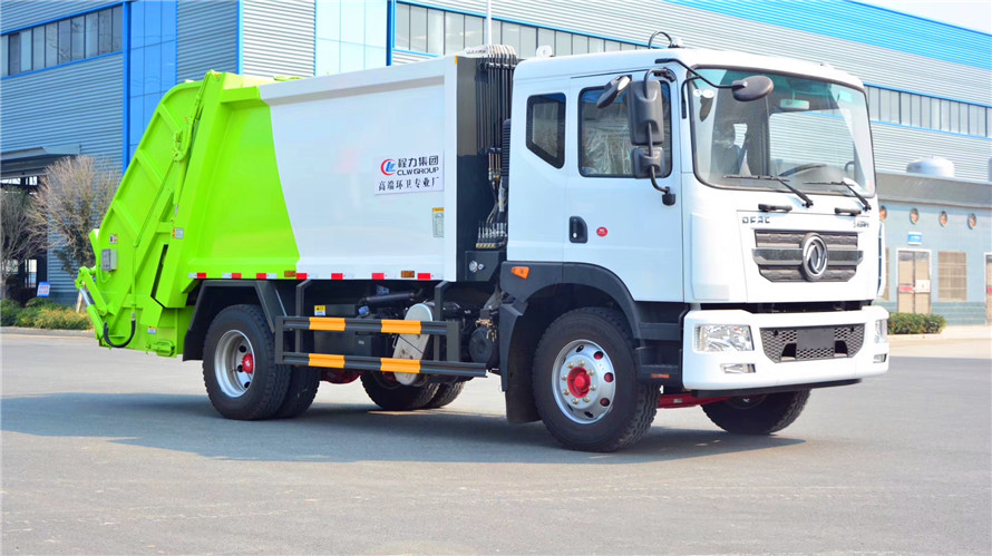 上裝配置:新款平面弧形廂體,廂體材料為武鋼優質碳鋼,有效壓縮容積10-12立方,PLC一鍵操作控制,手電一體操作模式,兩側雙電控,帶駕駛室內操作,底板支撐加強,雙向壓縮,開放式易清潔污水箱。壓縮式垃圾車采用機電液一體化技術,借助機、電、液聯合自動控制系統、電腦控制、手動操作系統,通過填裝器和推鏟等專用裝置,實現垃圾倒入、壓碎或壓扁、強力裝填,把垃圾擠入車廂并壓實和推卸,污水全部進入污水收集箱,解決了垃圾運輸過程中的二次污染的問題。壓縮式垃圾車具有自動反復壓縮以及蠕動壓縮功能,壓縮比高、密封性好、裝載量大﹑操作方便、環保性好﹑整車利用功率高等優點。作業自動化,垃圾收集方式簡便、高效。后翻轉機構選裝:1、掛塑料桶式翻轉機構;2、掛鐵桶式翻轉機構;3、擺臂式翻轉機構; 4、簸箕斗式翻轉機構。