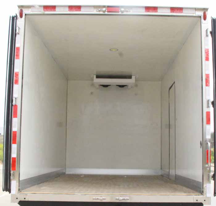 重汽冷藏車該車用于冷藏運輸的廂式汽車,裝備有隔熱結構的車廂和制冷裝置;貨廂頂部封閉,不可開啟.安裝液壓尾板質量為350kg,液壓尾板收起狀態下的水平長度為280mm.側、后防護裝置材料均為Q235碳鋼,連接方式均為螺栓連接,后下部防護截面尺寸(mm):直徑100,離地高度:400mm.后部選裝無液壓尾板,側/后下部防護裝置,材料:Q235碳鋼,連接方式均為:螺栓連接;后下部防護截面尺寸(mm):100×50,離地高度:450mm.ABS系統型號為XH-KQ4S4M-E01,生產企業為廣州市西合汽車電子裝備有限公司;型號為CM4XL-4S/4M,生產企業為廣州瑞立科密汽車電子股份有限公司;型號為VIE ABS-Ⅱ,生產企業為浙江萬安科技股份有限公司.發動機/油耗申報值對應關系為(L/100km):F2.8NS6B156/11.40,WP2.3NQ130E61/10.18,D25TCIF1/11.06,D30TCIF1/11.34,WP3NQ160E61/10.48,WP2.5NQ150E61/10.11,WP2.5NQ160E61/10.11,F2.8NS6B131/11.40,F2.5NS6B131/11.10,F2.5NS6B150/11.10,F2.5NS6B160/11.10,WP2.3NQ130E61A/11.13.該車選裝直接供電式ETC車載裝置.選裝同等功率制冷機組,外觀形狀可不同.該車型整備質量包含隨車工具,不含備胎和滅火器.貨廂重量為780kg,貨箱壁厚80mm,底板和頂板材質為玻璃鋼板+擠塑聚苯乙烯,厚度為79mm,側板材質為玻璃鋼板+擠塑聚苯乙烯,厚度為79mm.隨底盤選裝駕駛室,選裝前面罩.選裝貨箱側面和后部樣式.