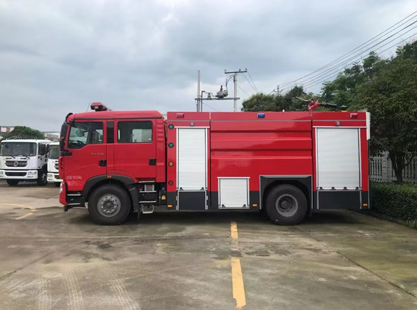 豪沃8噸水罐消防車采用重汽豪沃底盤改裝,平頭雙排駕駛室,液壓翻轉,重汽350馬力發動機,罐體容積7.9立方米;整車結構緊湊,方便靈活,動力性能好,車速高,能自由進出鄉村狹窄道路及小區,具有大型消防車的全套消防功能,上裝箱體的上裝骨架全部采用引進歐洲技術生產的鋁合金型材制造,整車的重量減少,機動性能和整車載重量提高。除了裝備消防水泵及器材以外,還設有較大容量的貯水罐及水槍、水炮等?蓪⑺拖廊藛T輸送至火場獨立進行撲救火災。也可以從水源吸水直接進行撲救,或向其他消防車和滅火噴射裝置供水。在缺水地區也可作供水、輸水用車,主要適用于大中城鎮、鄉村狹窄街道、城市小區、繁忙的批發市場等場所的一般物質滅火,閑暇時可用于園林噴灌、道路清灑。