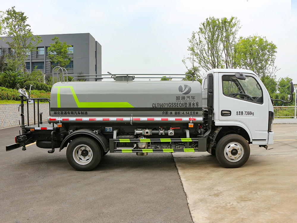 邢臺灑水車產品主要技術參數 序號 名稱 型號、規格 1 整車型號 CLT5071GSSEQ6 型灑水車 2 發動機型號 CA4DB1-13E6 3 發動機馬力/功率 錫柴 130 馬力/95KW 4 發動機排量 2207ML 5 變速箱 萬里揚 6 檔 6 輪胎規格 7.00 鋼絲胎 7 軸距 3308 8 總質量 7360KG 9 整備質量 3220KG 10 額定載質量 4010KG 11 整車尺寸(長×寬×高) 6.15*1.99*2.4 12 罐體容積 5 方 13 燃料種類 柴油 14 排放標準 國六 15 水泵型號 40/50 16 罐體材質 Q235 碳鋼