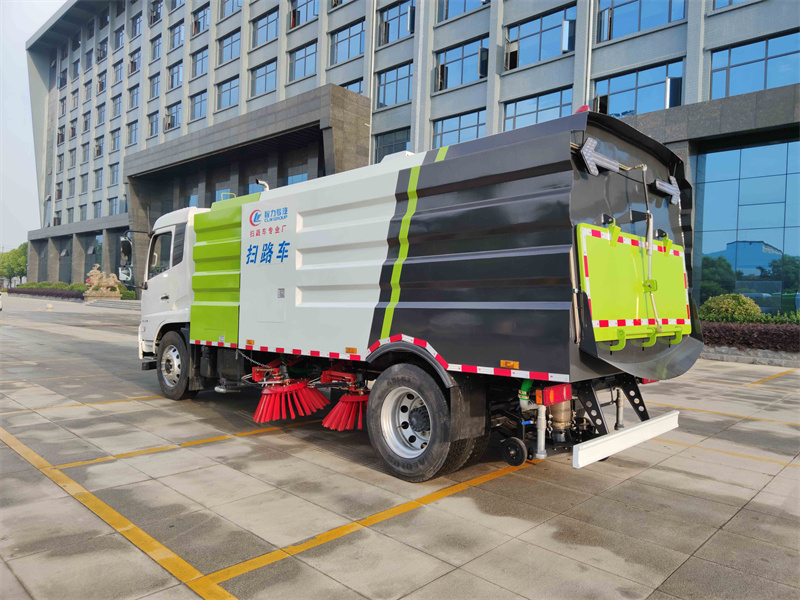 1、清掃車采用吸掃結合的方式收集垃圾,濕式除塵、電液控制,液壓傾翻卸料的作業(yè)方式對路面進行清掃作業(yè)。