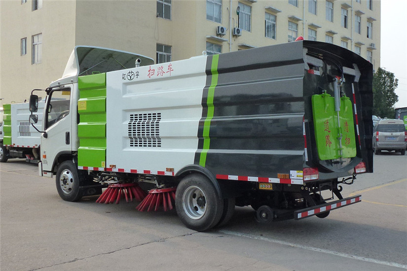 1.5立方水箱、4立方不銹鋼垃圾箱;中置4掃盤、后置吸盤、三洋馬達、江鈴五十鈴副發動機、施耐德控制開關、海普瑞思電磁閥組、無極變速自動離合器、免維護離心式風機、不銹鋼垃圾箱、北極星電子水泵、垃圾箱舉升自卸、尾部LED箭頭燈、手動泵應急系統。可選裝前沖后灑、垃圾箱自潔功能、倒車影像作業監控、前置雪鏟、掃雪滾。