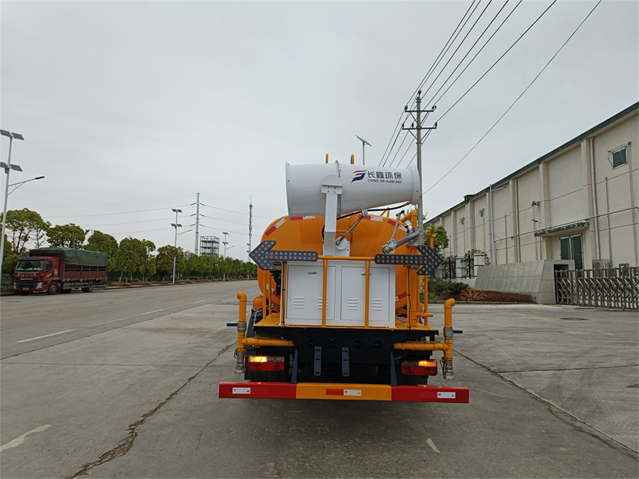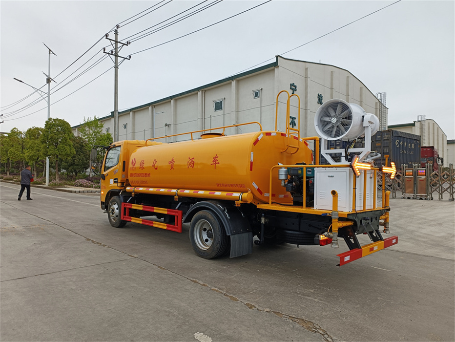 我公司產品灑水車標配前噴(鴨嘴)、后沖、后灑、側噴、后置式工作 平臺,平臺上配置綠化水炮(可 360°旋轉,既可以調成柱狀,也可 以調成霧狀,更可以調成直沖狀、大雨、中雨、小雨、毛毛雨),配 備優質大功率專用灑水泵(可自吸自排,可從河里或池塘抽水到罐體), 取力器,雜物過濾網,消防接口,自流球閥系統、取力器、球閥、濾網 均為國家標準產品,主管道加粗,法蘭墊、法蘭盤加厚,大通徑球閥。 整體具備性能優良安全可靠、效率高、流量大、維修方便等特點。