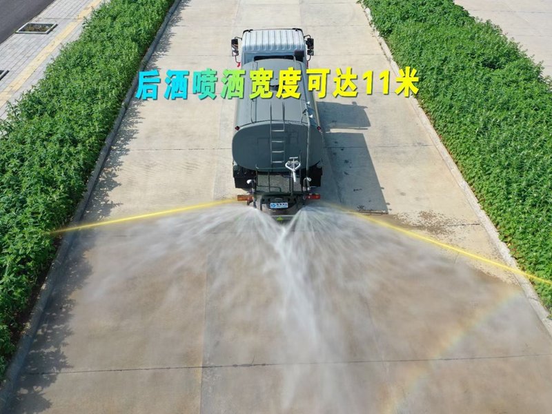 專用功能配置:罐體實際容積約為10立方米,公告有效參數8.1立方米、采用武鋼優質碳鋼板卷壓成型。配備專用灑水泵,自吸自排,前噴后灑、側噴、后工作平臺及灑水高壓炮。灑水泵自吸高度為6米左右,整車灑水寬度14米左右,后工作平臺水炮上下左右360旋轉可調成:直沖狀、大雨、中雨、小雨、霧狀,有效射程≥28米,整車帶接頭、水位計,自流閥。后工作平臺主管道有一個一寸的澆花接口,附送2根3米水管,1個爬梯,兩側及后保險杠。 |