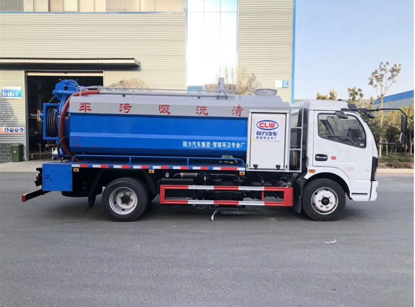 如果吸糞車出現了溢罐現象。我們需要清洗被污染的部位:真空泵、油水分離器,水汽分離器、四通閥(吸污泵開關)、氣管。首先排空吸糞車罐體內的污水。然后將讓吸污泵運行一會,排出四通閥、氣管內的污水,雜物(此操作時間要短,防止吸污泵磨損)。然后將吸污泵,油水分離器中被污染的機油放掉,用風槍吹干凈,并更換新的機油。水汽分離器,四通閥以及連接管道,用大量清水沖洗干凈,再用風槍吹干。最后將這些部件原樣裝回,即可照常使用。