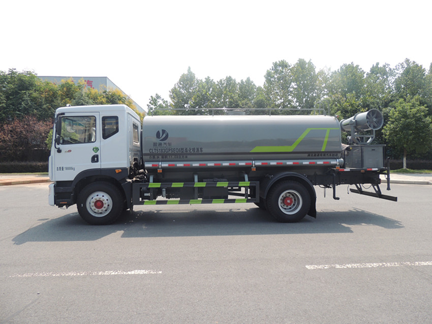 園林綠化灑水車功能配置:罐體用4MM碳鋼板制作,罐內(nèi)隔板具有防波作用,以減低汽車行駛時(shí)罐體液體的沖擊。整車帶一個(gè)專用灑水泵(垂直最大吸程6米),灑水寬度14米,射程28米。多功能灑水車配備2個(gè)前沖(噴)(能將路面泥巴、塵土、垃圾沖干凈);2個(gè)后灑(能均勻地將水灑在路面,一次灑水寬度14米)、2個(gè)側(cè)噴(花灑)(能均勻地將路旁綠化帶澆灌)、帶1個(gè)后工作平臺(tái),平臺(tái)上安裝1個(gè)綠化灑水高炮(灑水炮可全方位旋轉(zhuǎn),可連續(xù)調(diào)成直沖狀、大雨、小雨、毛毛雨,霧狀可調(diào)節(jié)沖洗高大樹木),引水時(shí)間<5min,流量90m3/h。帶1個(gè)消防接頭,帶1個(gè)自流閥,1個(gè)過濾裝置、人性化爬梯及側(cè)防護(hù)欄,安裝灑水音樂喇叭。