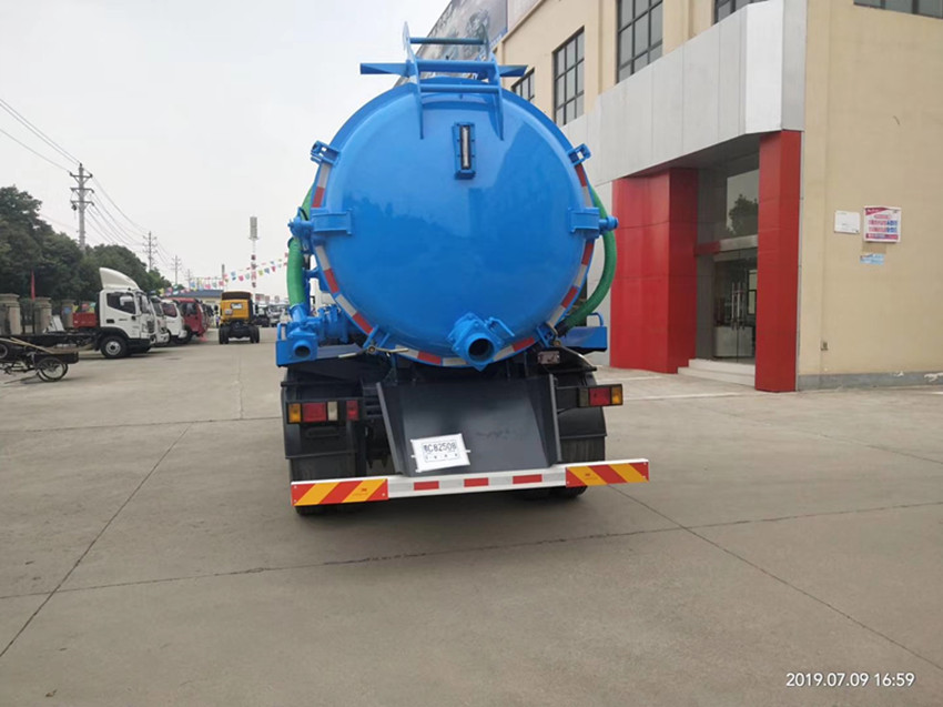 福田8噸吸污車該車用途為吸污,主要裝置為污罐;罐體有效容積:7.28立方米,運輸品名:液態(tài)污物,罐體尺寸(mm): 直段長4100,直徑1500;防護材料:Q235A碳鋼 ,連接方式:左右側面及后下部防護均采用焊接連接,后部防護斷面尺寸(mm):150×50,后部防護離地高度(mm):480. 整車長/軸距對應關系為(mm):6950/3800,7350/4200;ABS控制方式為4S/4M,ABS型號為CM4XL-4S/4M, 生產(chǎn)廠家為廣州瑞立科密汽車電子股份有限公司;選裝車輛后部圖片. |