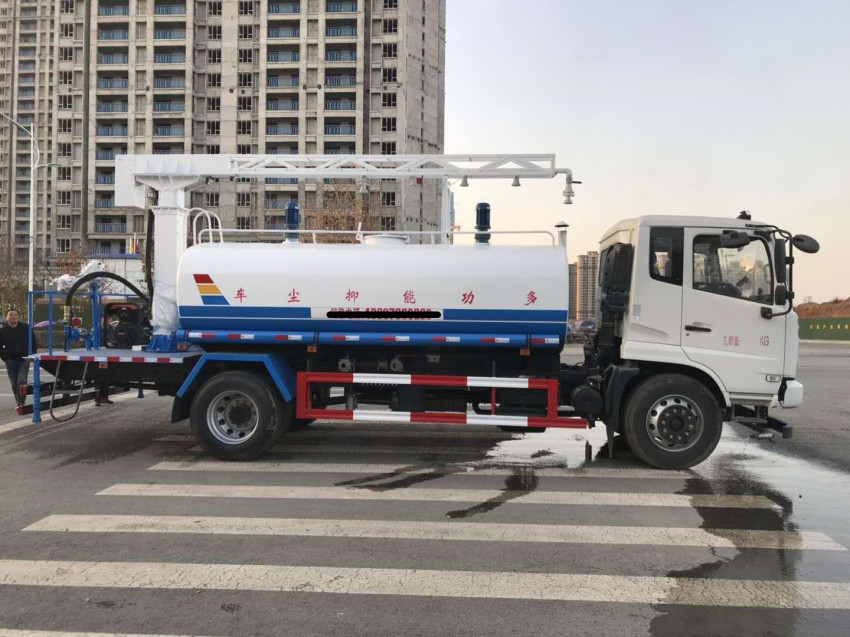 多功能抑塵車主要結(jié)構(gòu)是在行走機構(gòu)上加裝方型大容積水罐、高效遠程霧炮系統(tǒng)、大功率專用自吸自排水泵,中低壓沖洗灑水系統(tǒng)、綠化灑水高炮(可選裝自動灑水高炮,在罐體前端)等等而改裝組成。、罐體容積大(10-12立方),免征產(chǎn)品。