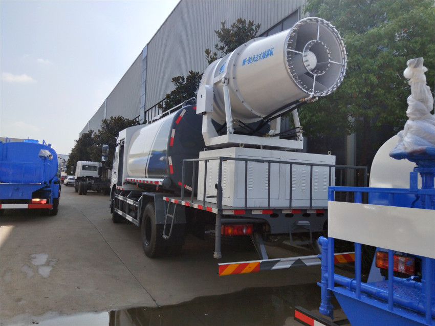 抑塵車吸程≧7米,灑水寬度≧14-16米,射程≧25-40米,引水時間<5min,流量60m3/h。前沖(噴)、后灑、帶側噴(花灑)、帶后工作平臺、平臺上安裝綠化灑水高炮(炮噴射形狀可調節:直沖、大雨、中雨、毛毛雨、霧狀、可連續調節,360°旋轉),配消防接口,自流閥,濾網,帶自吸自排功能。配備大功率專用灑水泵,泵可自吸自排,安裝過濾網,帶消防接口,可通過消防栓進水,帶自流閥,此車尾部加裝大功率農藥噴灑炮,噴灑狀態霧狀,有效射程15-45米,外部平臺帶獨立的機組。