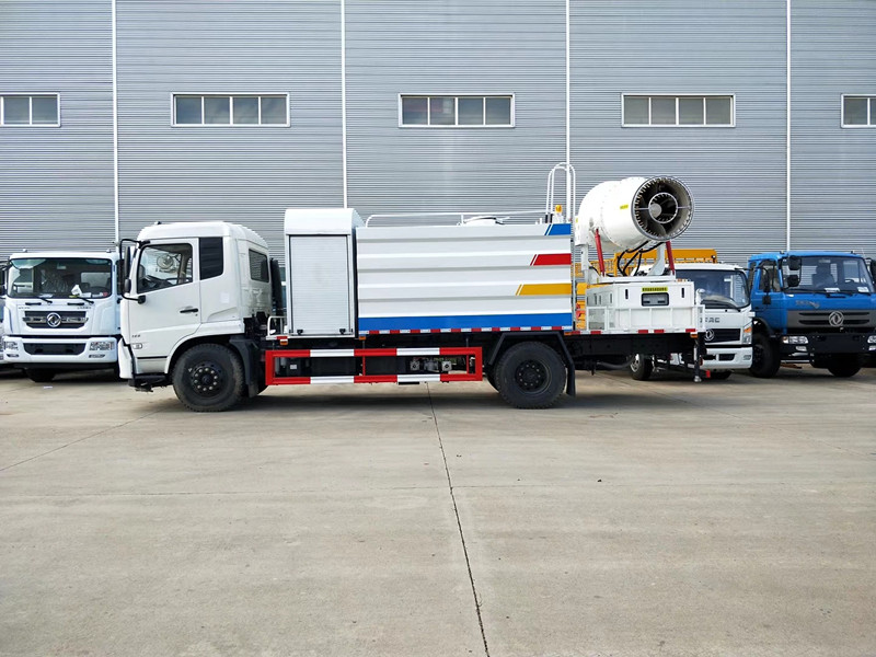 罐體容積:罐體容積10-12立方,罐體鋼板采用Q235碳鋼鋼材,前沖后灑、側噴、平臺高炮、自流閥及消防接頭各1個、水管2根、標配大功率自吸泵 ,可選裝50-80米噴霧機,根據噴霧機射程選擇配套的發電機組,詳細參數:《噴霧機/霧炮機》
