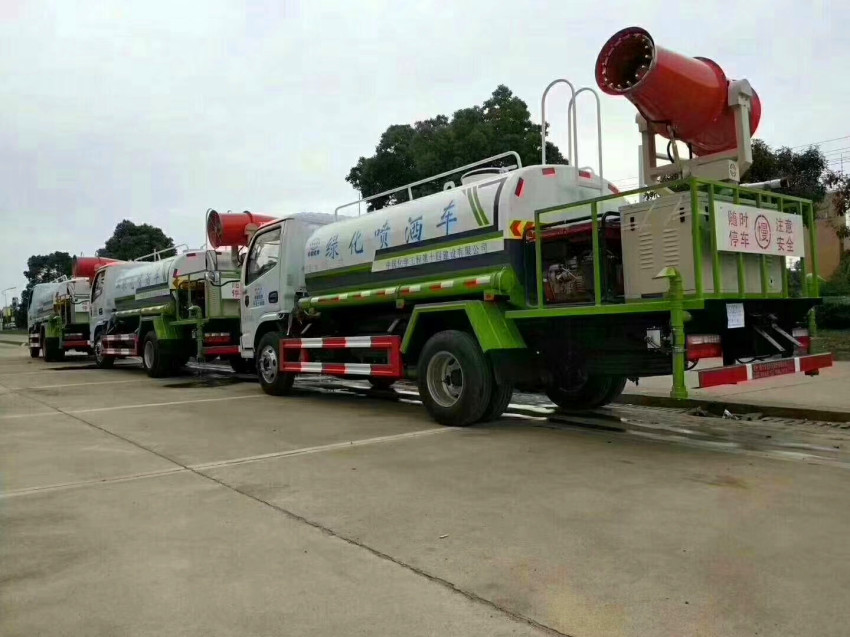 抑塵車吸程≧7米,灑水寬度≧14-16米,射程≧25-40米,引水時間<5min,流量60m3/h。前沖(噴)、后灑、帶側噴(花灑)、帶后工作平臺、平臺上安裝綠化灑水高炮(炮噴射形狀可調節:直沖、大雨、中雨、毛毛雨、霧狀、可連續調節,360°旋轉),配消防接口,自流閥,濾網,帶自吸自排功能。配備大功率專用灑水泵,泵可自吸自排,安裝過濾網,帶消防接口,可通過消防栓進水,帶自流閥,此車尾部加裝大功率農藥噴灑炮,噴灑狀態霧狀,有效射程15-45米,外部平臺帶獨立的機組。
